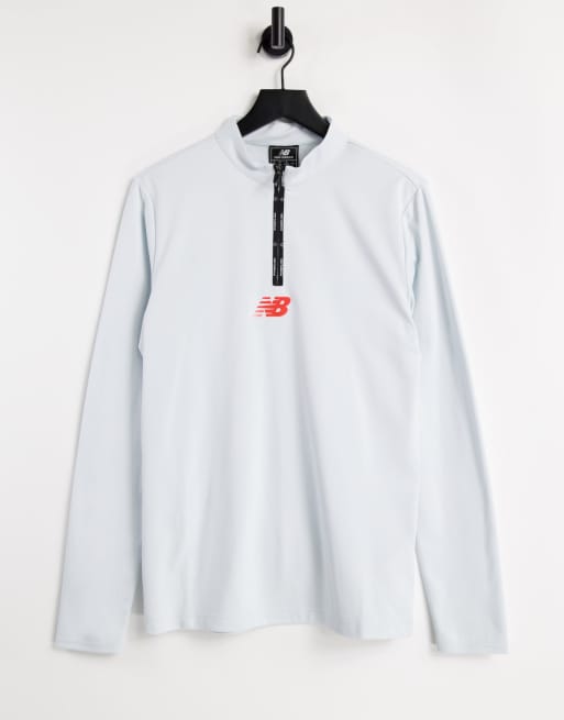 Top gris de fútbol con cuarto de cremallera y diseño gráfico de New Balance