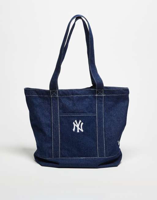 Bolso tote vaquero oscuro con detalle de bolsillo y logo de los NY Yankees de New Era