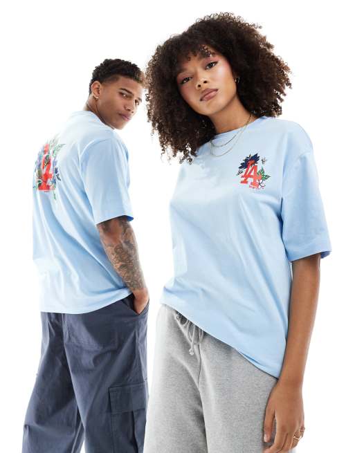 Camiseta azul unisex con estampado gráfico floral "Los Angeles" de New Era