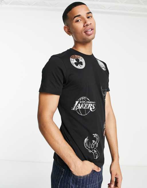 Camiseta negra con estampado de insignias plateadas metalizadas de la NBA de New Era