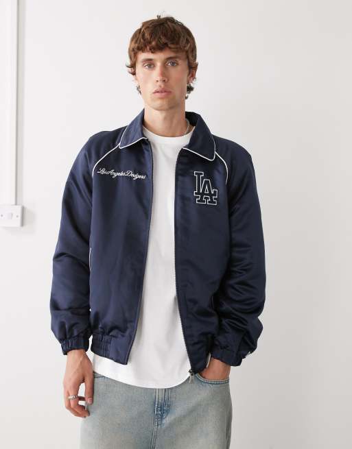 Chaqueta bomber azul marino de estilo universitario con diseño de los LA Dodgers de satén de New Era