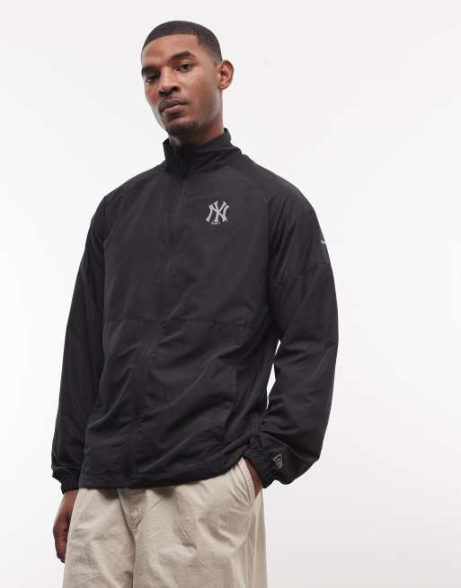Chaqueta de chándal negra con cremallera y logo de los NY Yankees de tejido liso de New Era