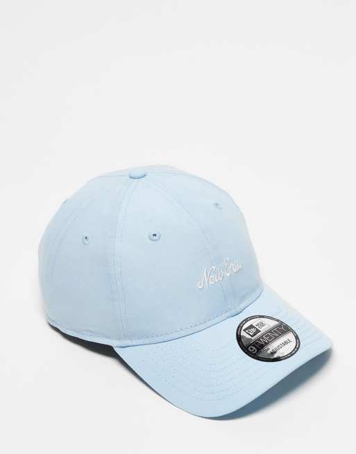 Gorra azul luminoso con texto de la marca 9Twenty de New Era