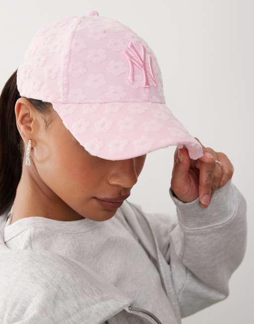 Gorra rosa con detalle de flor y logo de los NY Yankees de tejido rizado 9Forty de New Era