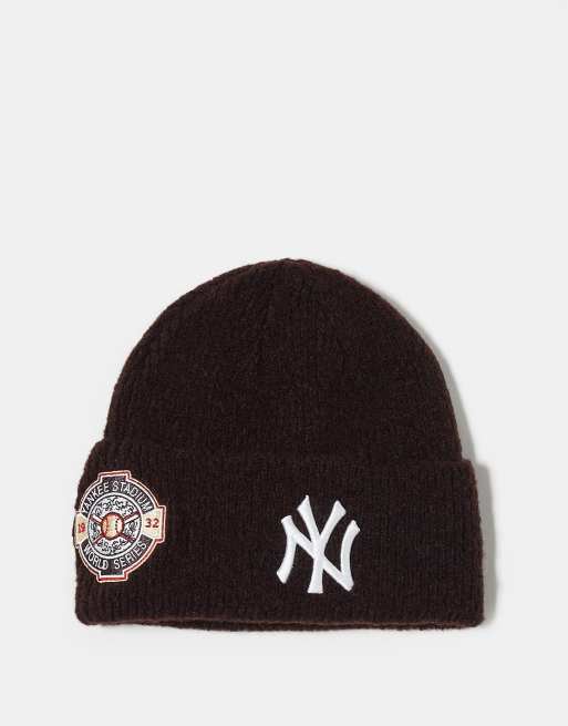 Gorro burdeos con dobladillo ancho y diseño de los NY Yankees de mezcla de lana de New Era