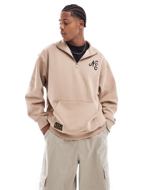 Sudadera beis con cremallera corta y logo de New Era