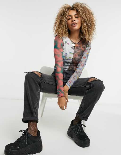 Top de manga larga con estampado mixto de malla de New Girl Order