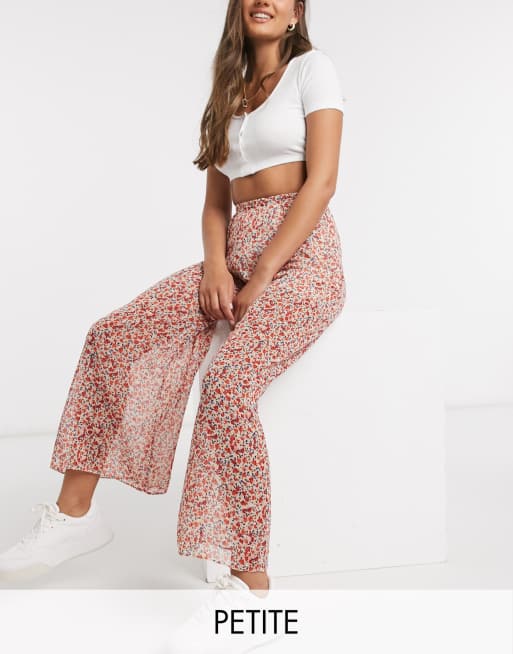Pantalones de pernera ancha en chifón floral de New Look Petite