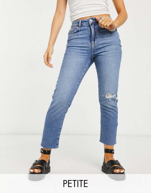 Vaqueros azules claros de pernera recta con rotos de New Look Petite