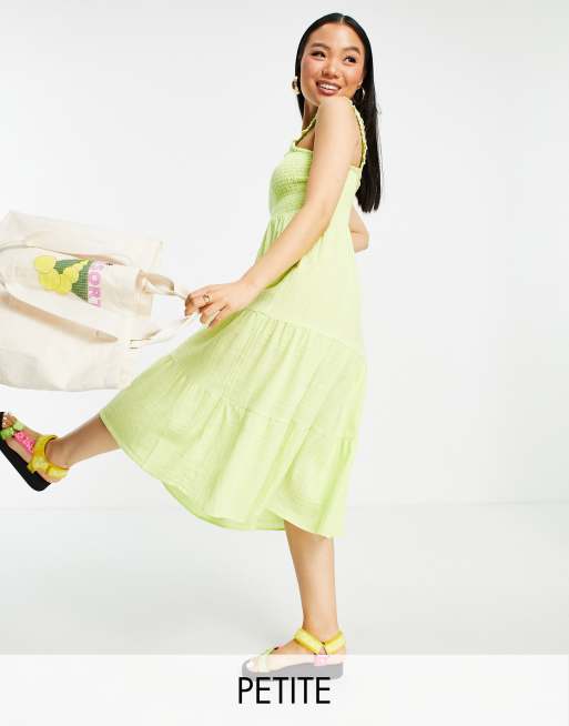 Vestido midi verde fruncido y escalonado de New Look Petite