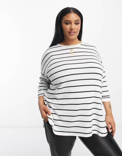 Camiseta blanca a rayas negras con mangas 3/4 de New Look Curve