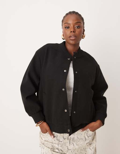 Chaqueta bomber corta negra con botones de presión de New Look Curve