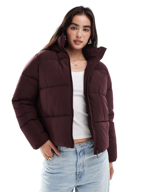 Abrigo de plumas corto burdeos de New Look