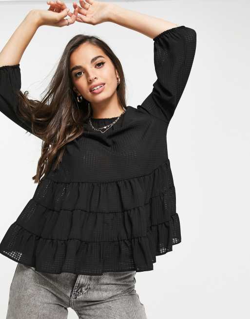 Blusa negra escalonada de New Look