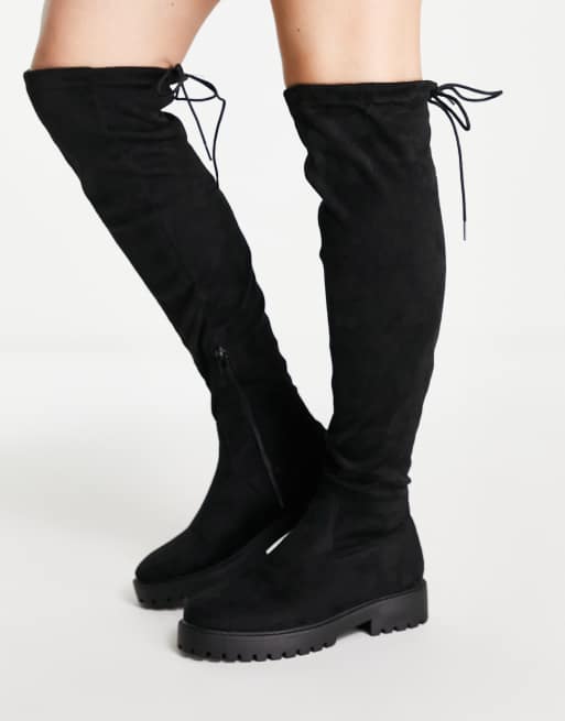 Botas por la rodilla negras planas de antelina de New Look
