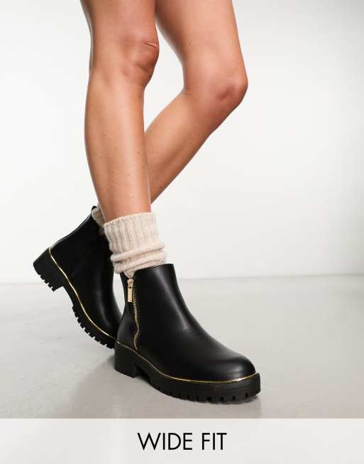 Botines Chelsea negros de tacón con suela gruesa de New Look Wide Fit