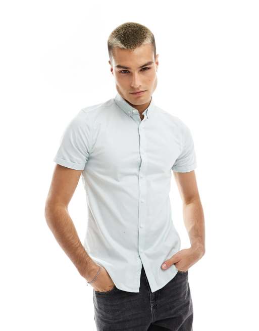 Camisa azul ajustada de manga corta de New Look