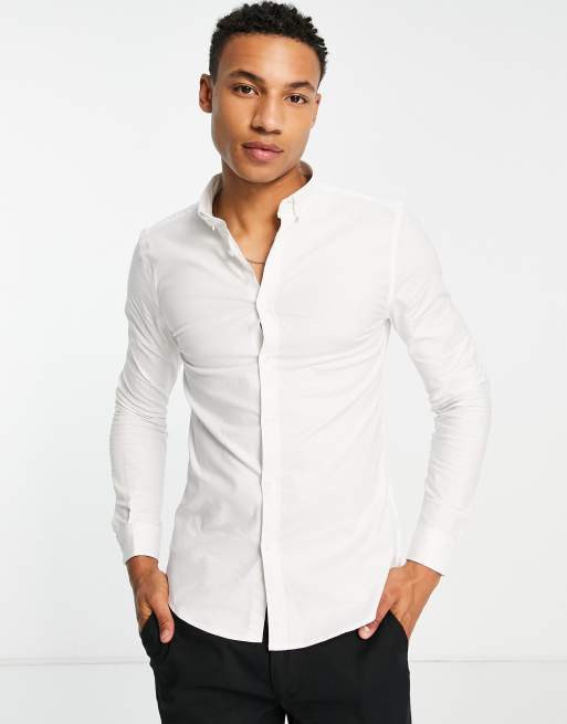 Camisa oxford ajustada de manga larga en blanco de New Look