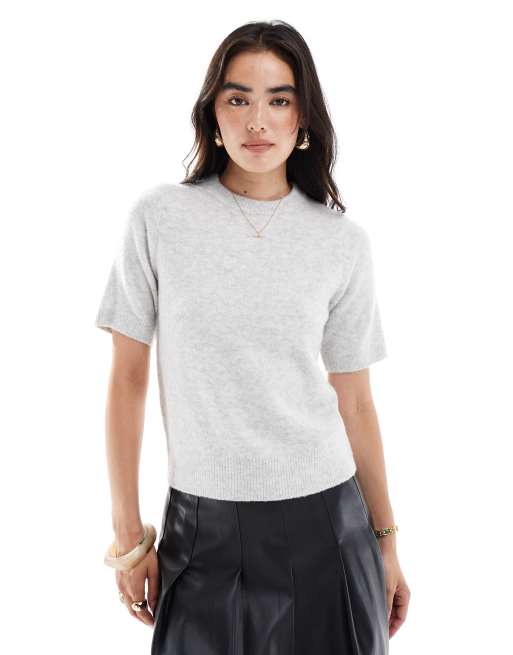 Camiseta gris claro con mangas abullonadas de punto de New Look