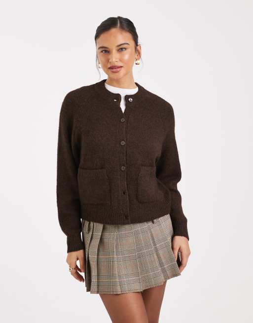 Cárdigan marrón con cuello redondo de New Look