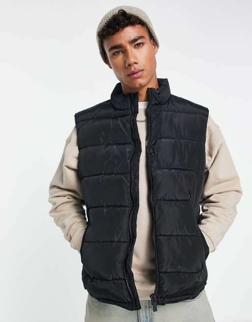 Chaleco de plumas negro con cuello alzado de New Look