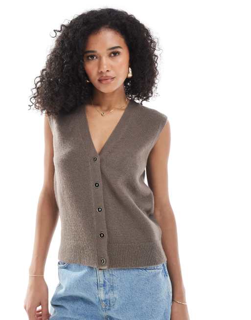 Chaleco de traje color visón abotonado de punto de New Look