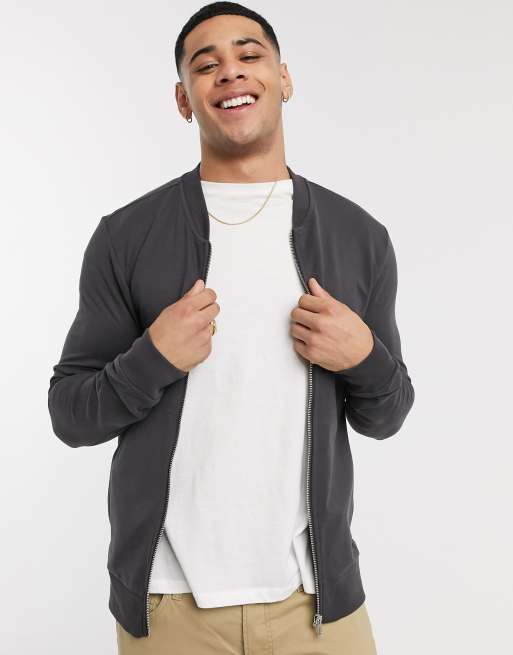 Chaqueta bomber de punto con cremallera en gris de New Look