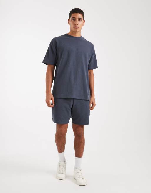 Conjunto azul petróleo de pantalones cortos y camiseta extragrande de punto gofrado de New Look
