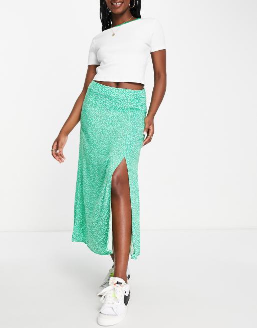 Falda midi verde con estampado floral y abertura lateral de New Look