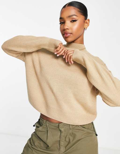 Jersey de cuello vuelo en camel de New Look