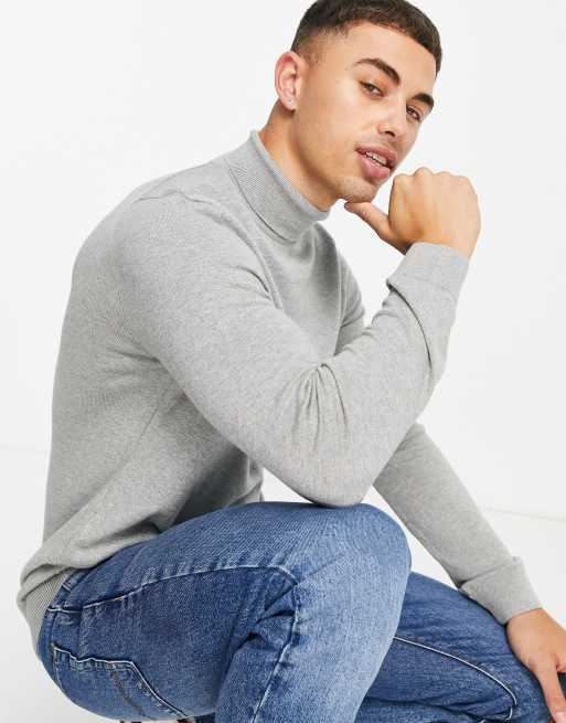 Jersey gris con cuello alto de punto de New Look