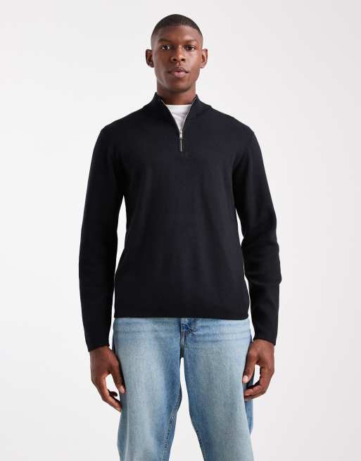 Jersey negro con cremallera corta de punto premium de New Look