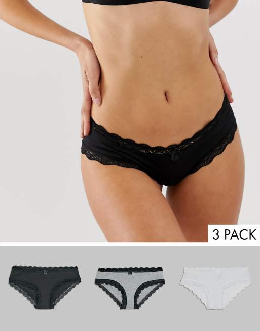 Pack de 3 culottes de algodón con ribete de encaje en multicolor de New Look