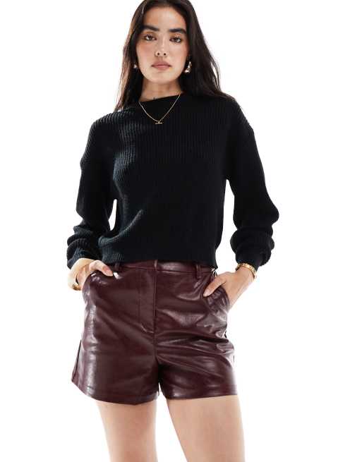 Pantalones cortos de sastre burdeos de poliuretano de New Look