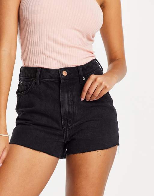 Pantalones cortos mom negros de talle alto de denim de New Look