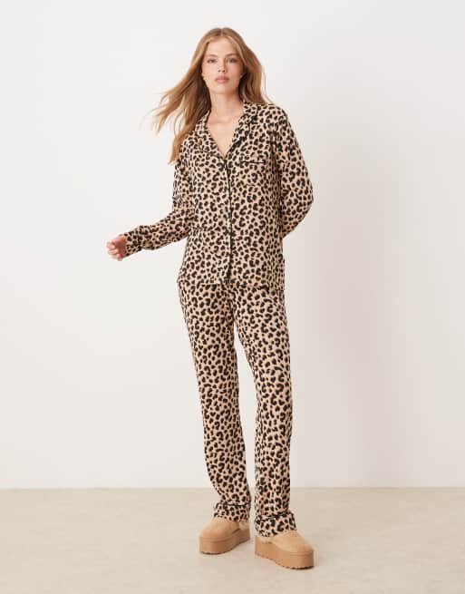 Pijama de manga larga con estampado de leopardo de punto liso de New Look