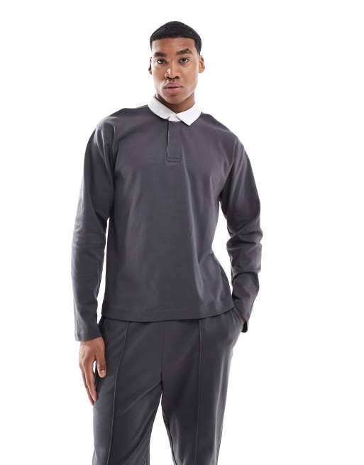 Polo gris oscuro de manga larga y estilo rugby de New Look (parte de un conjunto)