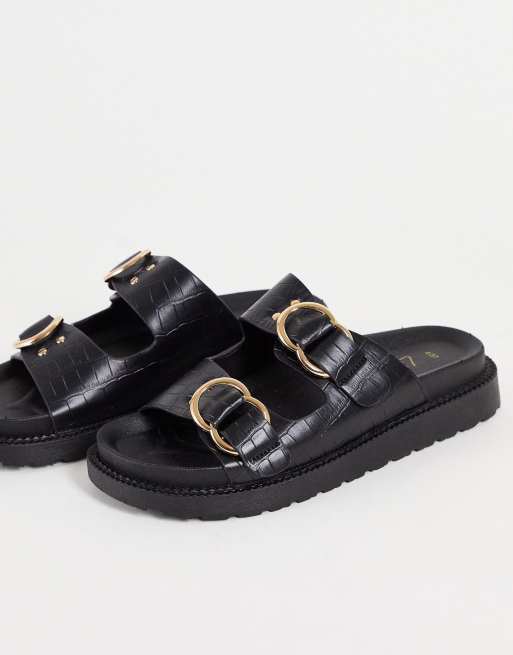 Sandalias negras efecto cocodrilo con doble hebilla de New Look