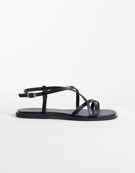 Sandalias planas negras con múltiples tiras de New Look
