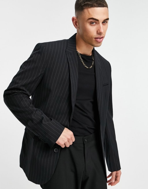 Traje negro entallado a rayas diplomáticas de pantalones y chaqueta de New Look