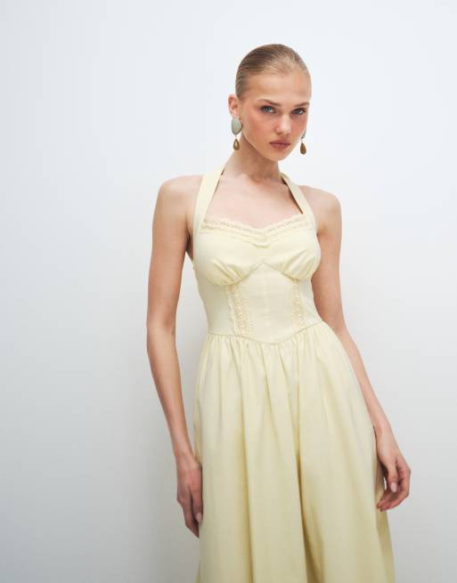 Vestido midi amarillo con cuello halter de bengalina de New Look
