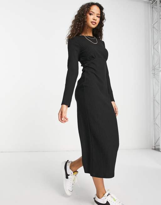 Vestido midi negro con cuello redondo de canalé suave de New Look