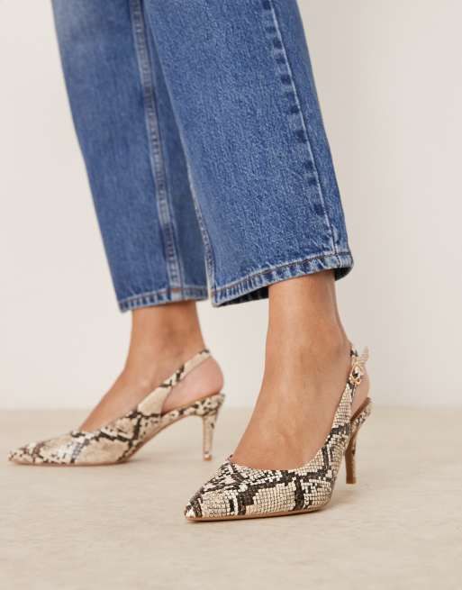Zapatos de tacón bajo con puntera fina y estampado de serpiente y leopardo de New Look