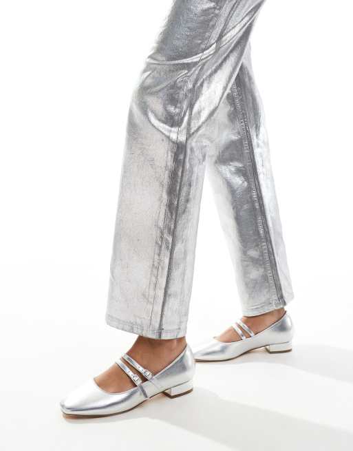 Zapatos plateados planos con detalle de tira doble de New Look