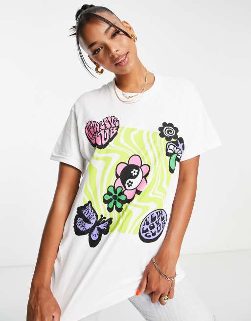 Camiseta blanca extragrande con estampado gráfico de New Love Club