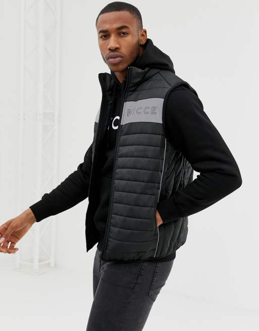 Chaleco de plumas en negro con panel reflectante de Nicce