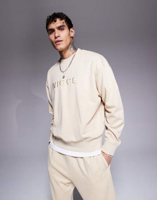 Sudadera beis lavado con cuello redondo y logo de Nicce (parte de un conjunto)