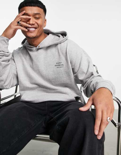 Sudadera gris con capucha y estampado en la parte delantera de Night Addict