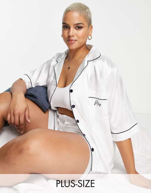 Pijama de novia blanco con ribetes en contraste de satén de Night Plus