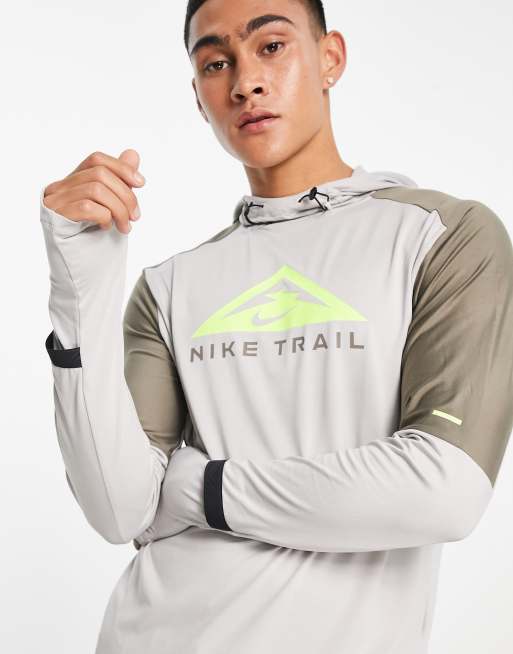 Sudadera gris con capucha y logo gráfico Trail Running de Nike